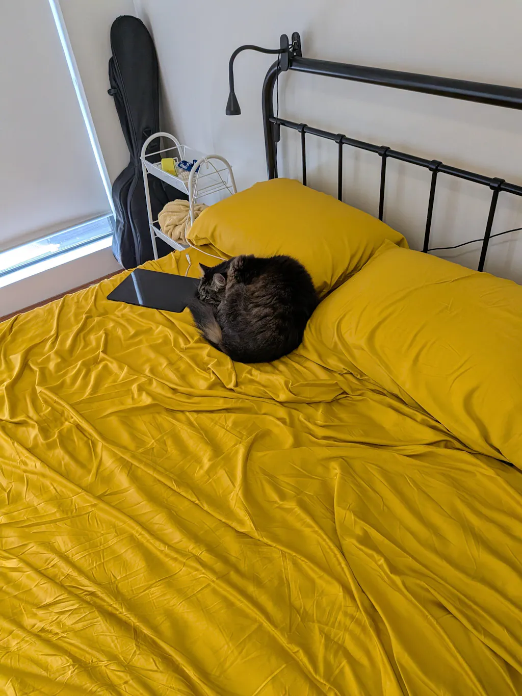 I got fairly adventurous and bought two colours I probably never would have considered and I love both of them. The sheets feel really nice. They don't feel cool immediately but I definitely wake up feeling less warm ot sweaty than on my old sheets. I have a fluffy cat whose hair gets everywhere and so far it seems that it doesn't stick and it just washes off in the washing machine. And the blue colour is absolutely gorgeous. It's also really easy to put the sheets on the bed.
